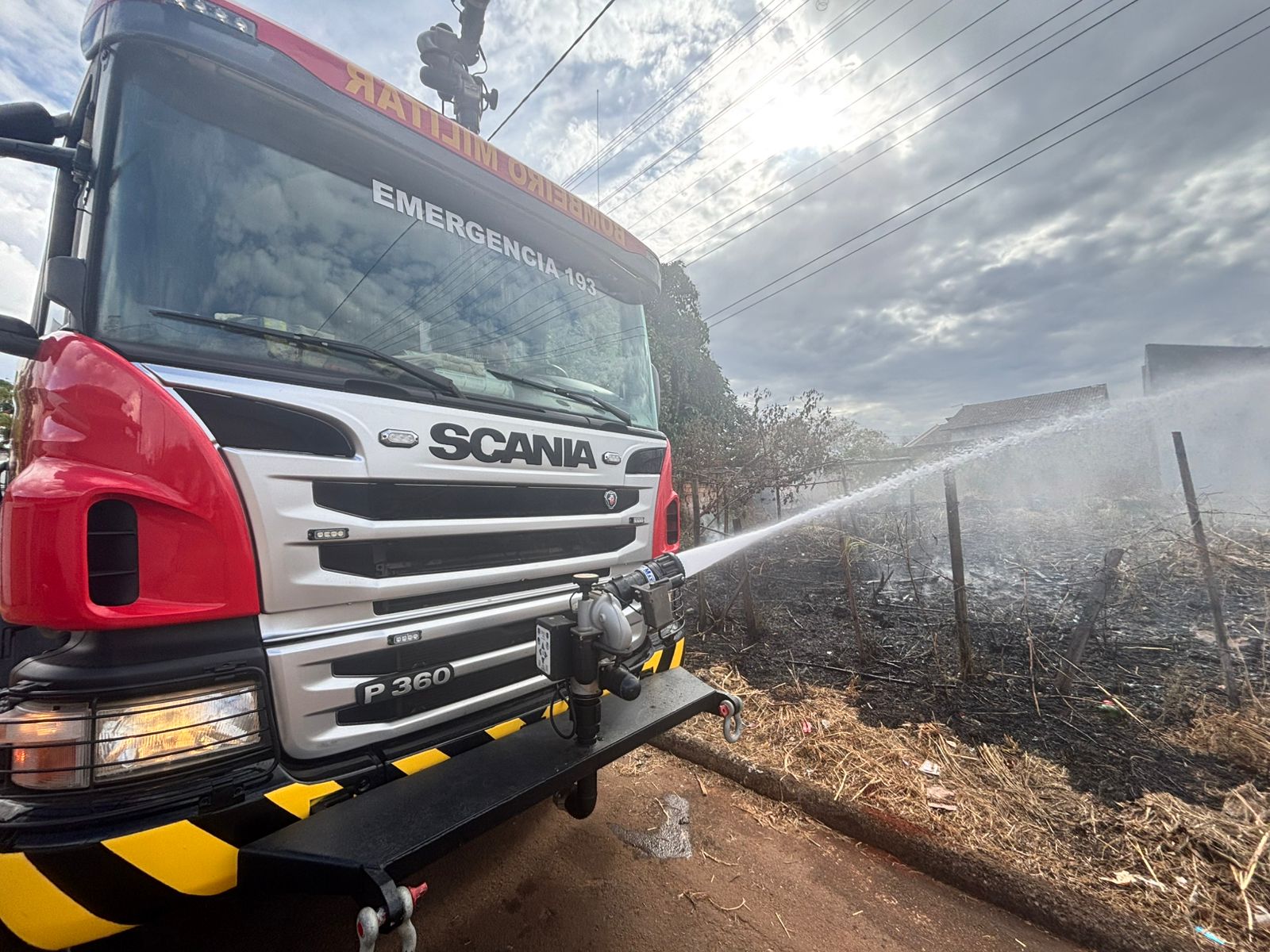 A equipe chegou rapidamente ao local e encontrou chamas consumindo parte da vegetação do lote. Felizmente, o incêndio não oferecia risco imediato a casas ou construções próximas. Os bombeiros utilizaram a reserva de água da viatura para conter e extinguir o fogo.