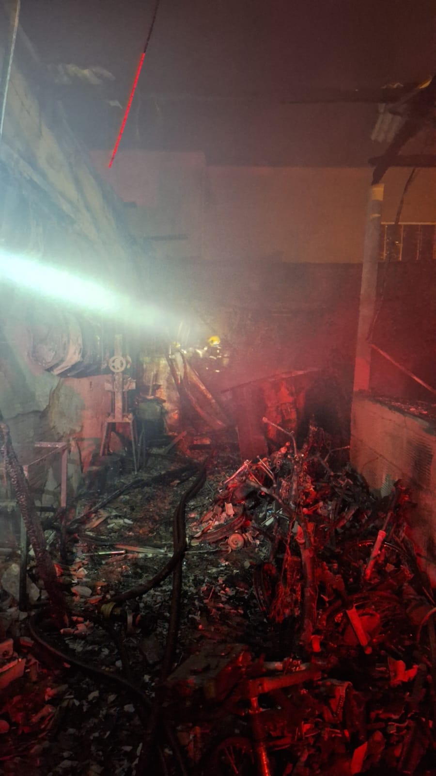 Na madrugada desta quinta-feira (21), o Corpo de Bombeiros Militar de Caldas Novas (GO) combateu um incêndio de grandes proporções em uma oficina de motos no Setor Itaici I.