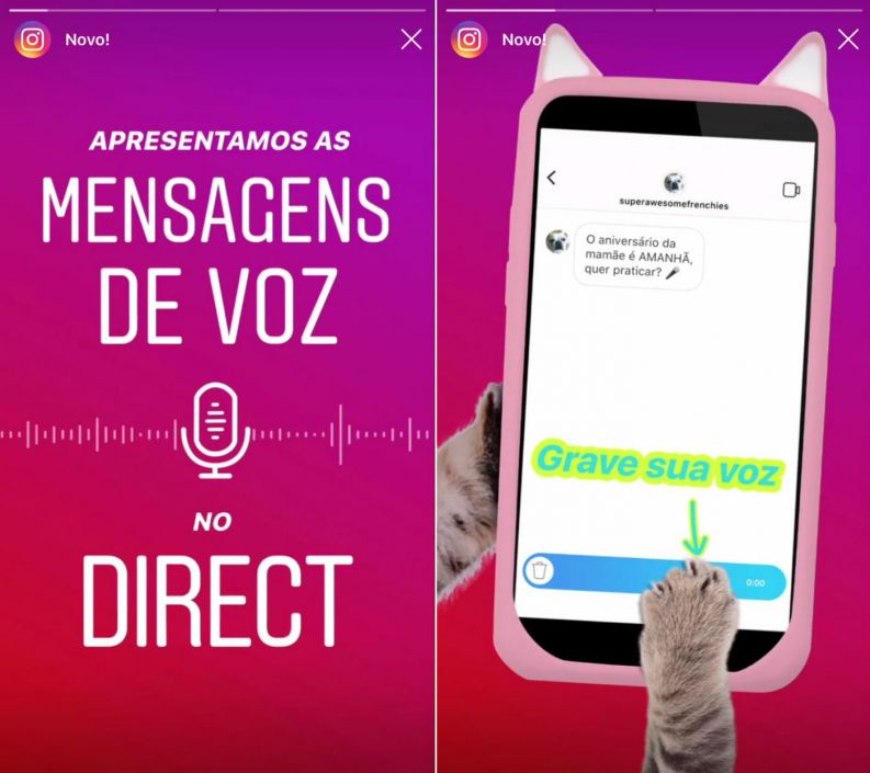 O Instagram ganhou nesta segunda-feira, 10, uma nova opção de mensagem privada. Agora você pode enviar mensagens de áudio para seus amigos na rede social através do Direct, assim como já é possível no WhatsApp.