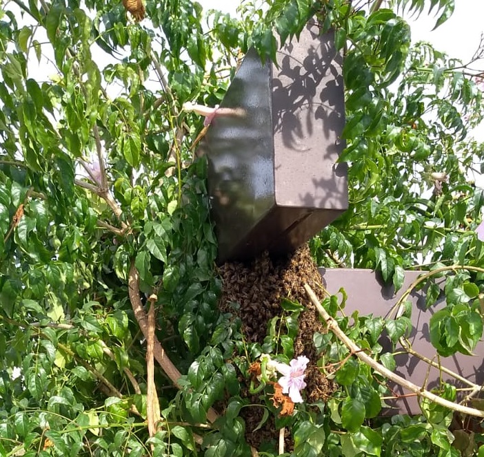 Na manhã desta segunda-feira (31), o internauta Reinaldo, enviou a foto abaixo, que mostra uma grande quantidade de abelhas africana em uma das plantas da Praça Duque de Caxias, no centro de Catalão.