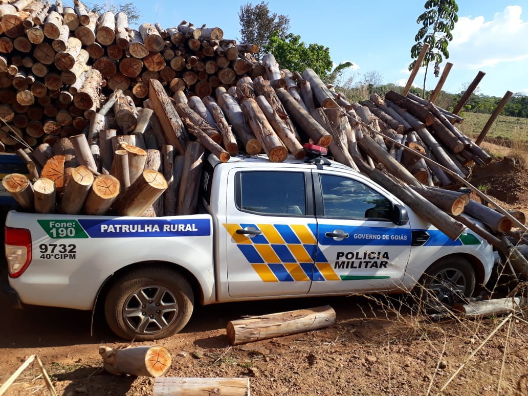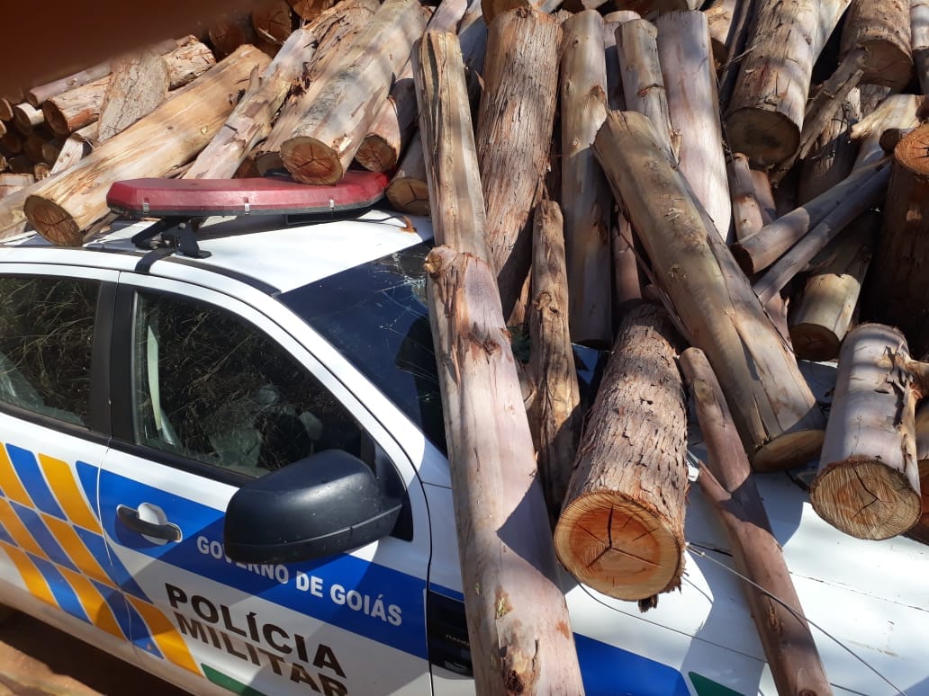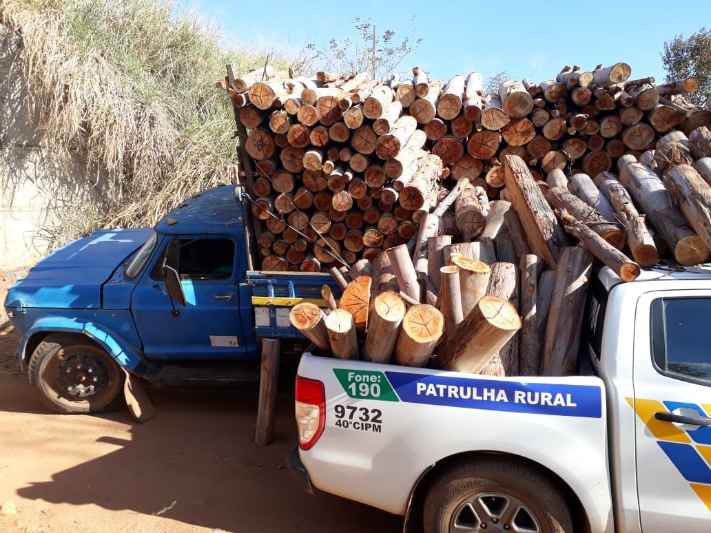 Ipameri: caminhão com 20 toneladas de lenhas tomba sob viatura da Patrulha Rural