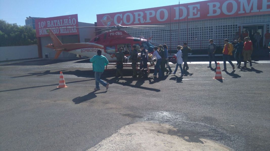 “Momento em vítima de acidentado é colocado na aeronave do Corpo de Bombeiros”