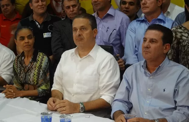 Marina, o então governador de Pernambuco, Eduardo Campos (ao centro) e Vanderlan Cardoso, que teve candidatura ao governo oficializada no PSB em junho de 2014, partido de Geraldo Alckmin, vice do presidente Lula. Foto: Sílvio Túlio/G1
