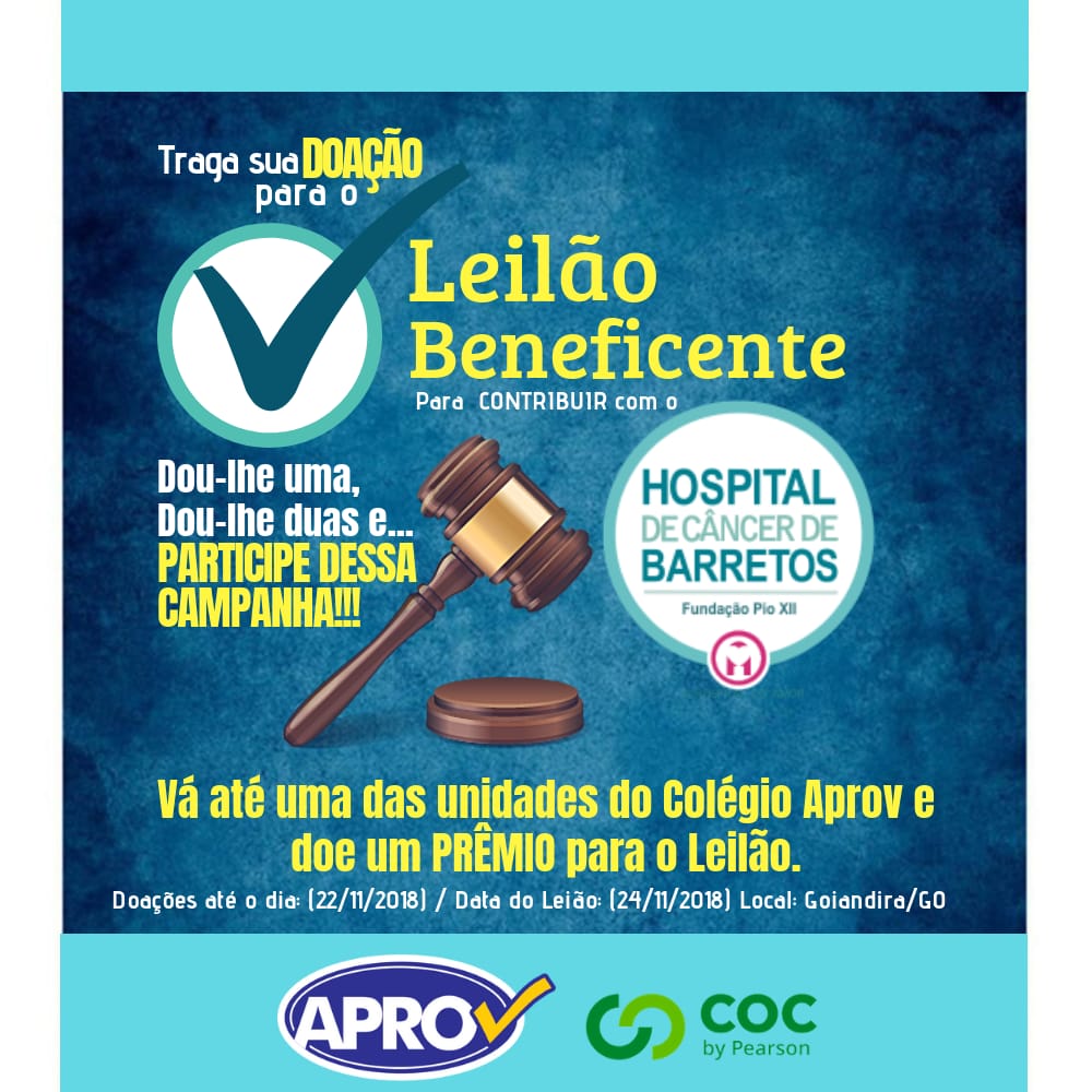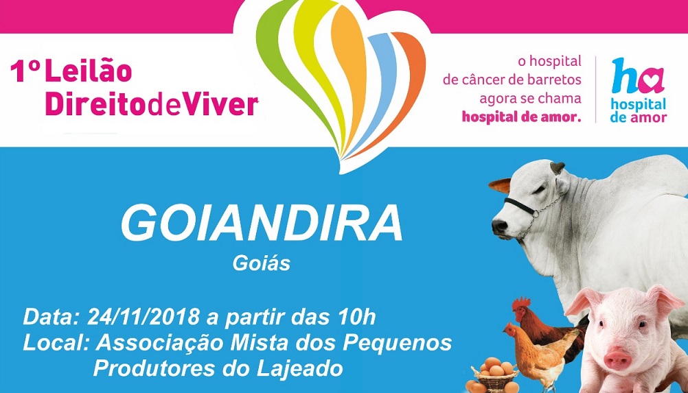 Na manhã do próximo sábado (25/11), a partir das 10h, na Associação de Mista dos Pequenos Produtores do Lajeado, zona rural do município de Goiandira, será realizado um leilão beneficente em prol ao Hospital do Câncer de Barretos-SP, realizado pela coordenação regional do HCB em Goiandira, com apoio de empresários e clubes de serviços.