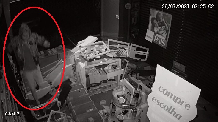 Além desse incidente, imagens das câmeras de segurança de uma pizzaria na cidade de Catalão flagraram o mesmo suspeito arrombando o estabelecimento em ocasiões anteriores. Na madrugada do último domingo (23), o indivíduo entrou no mesmo local duas vezes, onde se alimentou, consumiu bebidas energéticas e furtou diversos itens, incluindo aparelhos celulares.