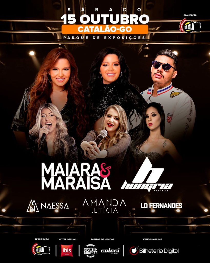A dupla Maira e Maraísa e o cantor de Hip Hop Hungria, vão fazer show na cidade de Catalão no dia 15 de Outubro, em evento da Trem Bala Promoções que será realizado no Parque Agropecuário Waldivino José Duarte.