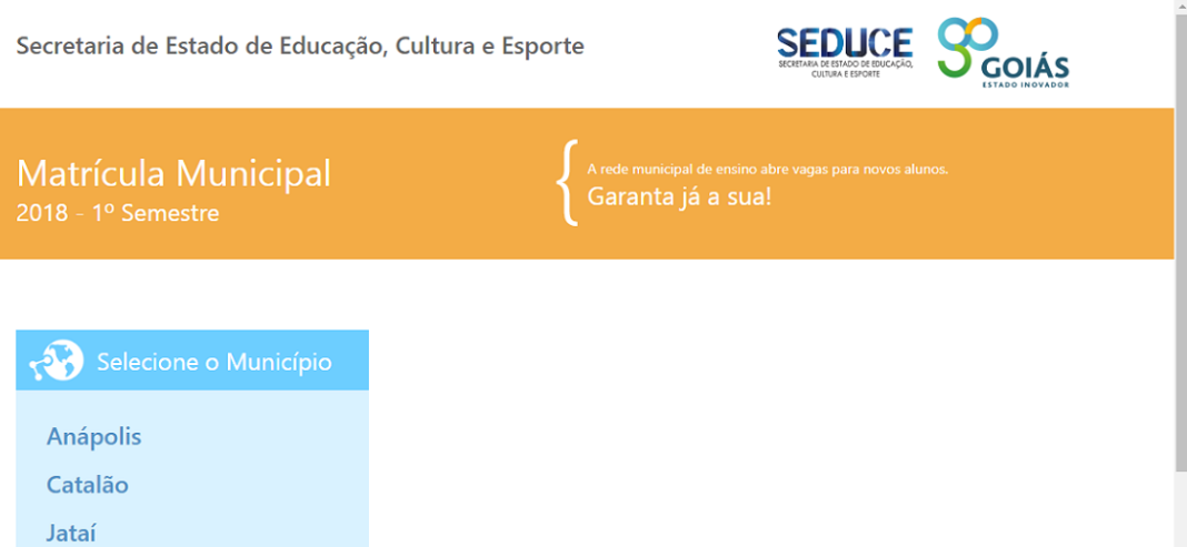 Será aberto na próxima segunda-feira (27), o período para os pais matricularem seus filhos nas Escolas Municipais e Centros Municipais de Educação Infantil (Cmeis) da cidade de Catalão, e serão feitas pelo site, disponibilizado pela Secretaria de Estado de Educação Cultura e Esporte (SEDUCE) aos municípios: www.matriculamunicipal.go.gov.br até o dia 29 de dezembro.