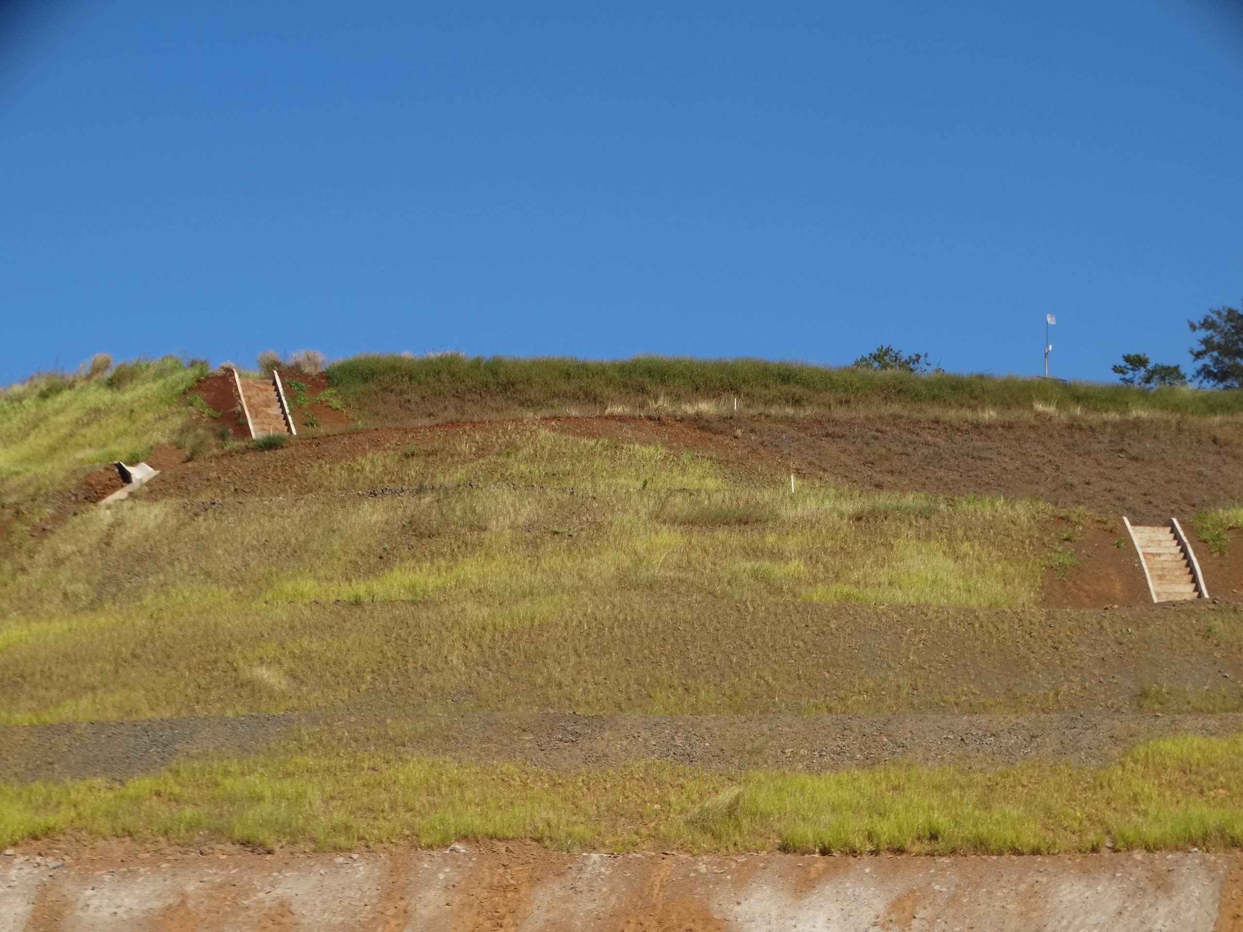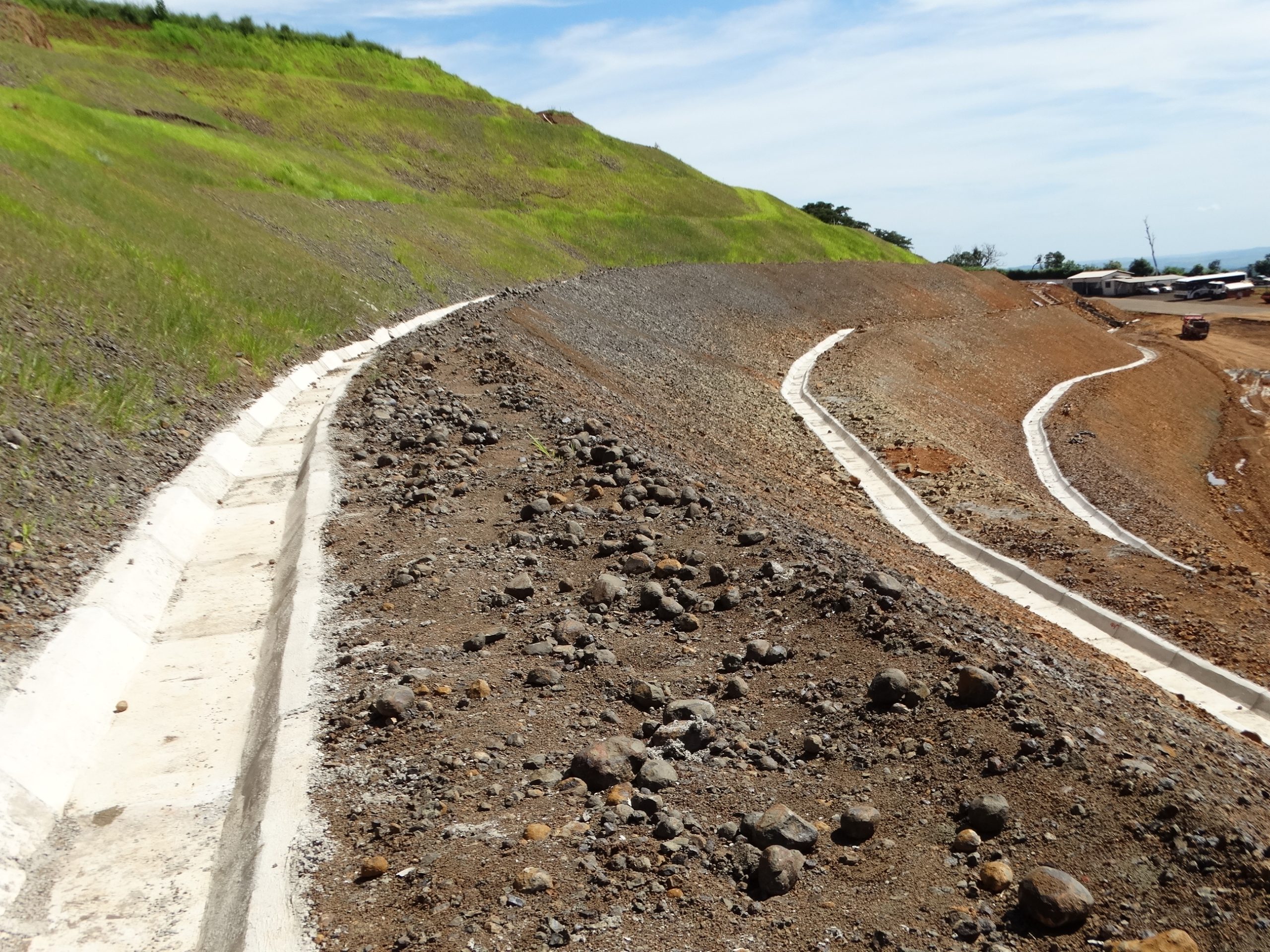 Para melhor captar e canalizar as águas das chuvas foi implantado na área do talude um sistema de drenagem composto de canaletas (4 mil metros lineares) e escadas hidráulicas de concreto (350 metros). Além disso, o novo talude terá proteção vegetal feita por meio de hidrossemeadura, com hidrojateamento de sementes, que consegue devolver o estado vegetativo natural a áreas degradadas, após a germinação.
