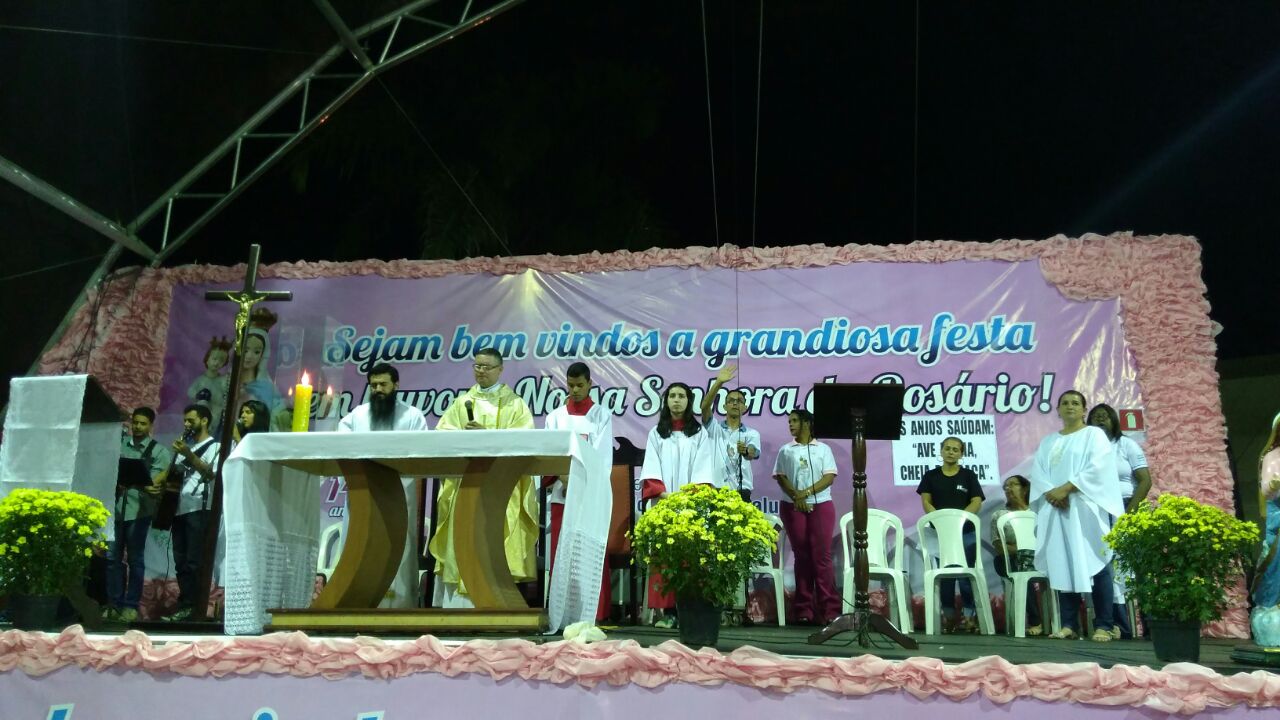 A parte religiosa do primeiro dia da centenária Festa em Louvor a Nossa Senhora do Rosário, foi finalizada com a celebração da Santa Missa, presidida pelos Padres Murah Rannier, pároco da Paróquia São Francisco de Assis e Padre Joel Gomes Martins, pertencente a Paroquia Nossa Senhora da Piedade de Orizona Goiás. A missa emocionou centenas de fiéis, principalmente no momento de acolhida da imagem de Nossa Senhora do Rosário, que saiu da torre da igreja e sendo colocada no palco-altar.