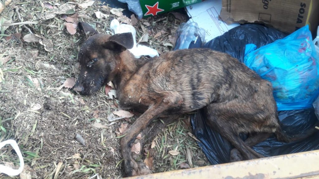O vira-lata estava debilitado quando foi encontrado dentro de uma caçamba de lixo no Bairro Jardim Paraíso, em Catalão, na tarde desta segunda-feira (27). Testemunhas disseram que o animal teria sido jogado por uma pessoa propositalmente. O Blog do Badiinho procurou por imagens de câmeras de monitoramento do local, mas não conseguiu nenhum registro.