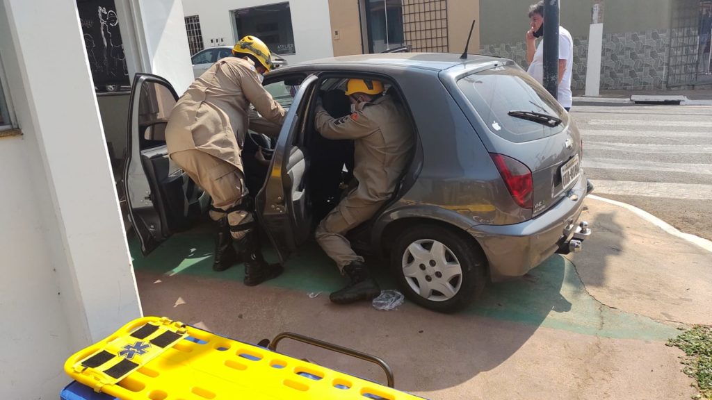 Uma motorista ficou ferida depois de se envolver em um acidente na Avenida 20 de Agosto, no Centro de Catalão. A vítima seguia de carro quando foi surpreendida por uma moto. Ao tentar se desviar, acabou perdendo o controle e batendo o carro na parede de uma loja de roupas.