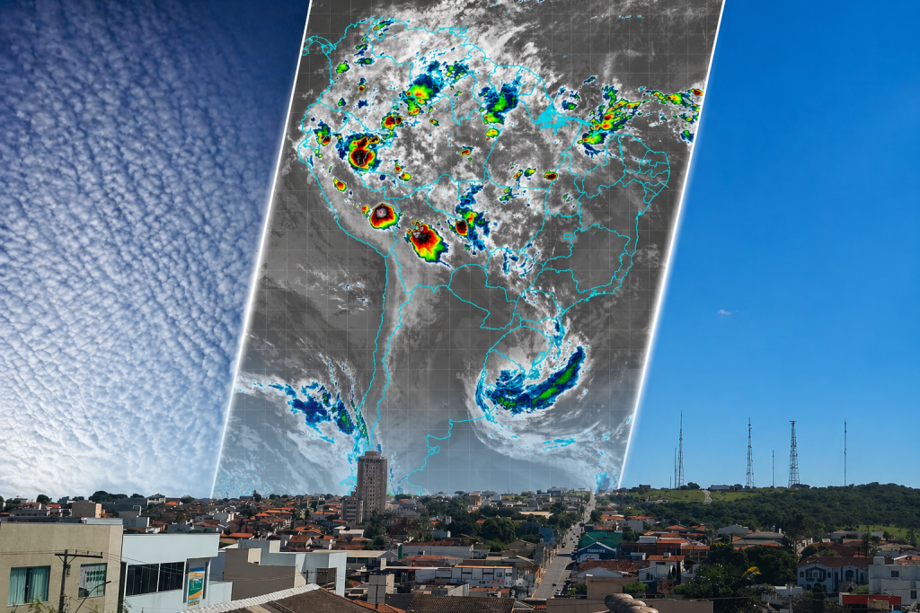 Além disso, a entrada de umidade da região amazônica tende a ganhar força, o que pode favorecer a formação de nuvens e, eventualmente, chuvas irregulares nos próximos dias.