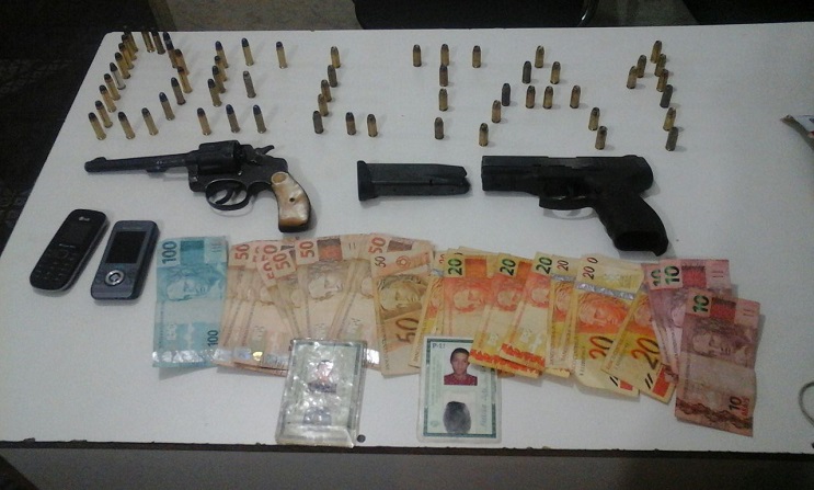 Além das armas, objetos e dinheiro que foram apreendidos, os autores foram presos em flagrante e conduzidos a Delegacia. Participaram da ocorrência: 1º Sargento Pena, 3º Sargento Humberto, Cabo Hermes e Cabo Pena.
