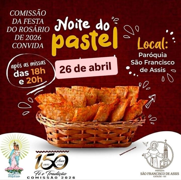 A Comissão da Festa do Rosário 2026 realiza, neste sábado (26), a “Noite do Pastel”, em Catalão. O evento acontece na Paróquia São Francisco de Assis.