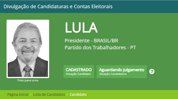 Por 6 votos a 1, o TSE decidiu rejeitar o pedido da candidatura tendo como base a Lei da Ficha Limpa, que impede políticos condenados em segunda instância de concorrerem a cargos eletivos. O ministro concordou com os argumentos dos advogados do Partido Novo de que as propagandas veiculadas no último sábado representam descumprimento à decisão do TSE.