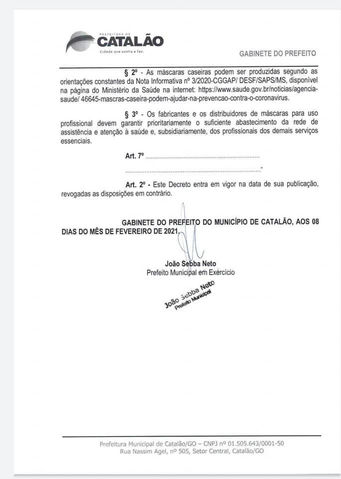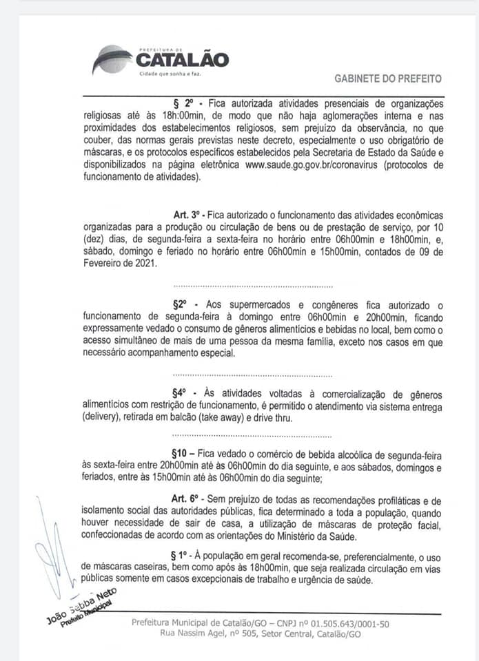 Afim de trazermos maiores esclarecimentos do Decreto Municipal 185, assinado e publicado hoje pelo prefeito em exercício, Dr. João Sebba (PP), procuramos a Secretaria de Comunicação da Prefeitura de Catalão, para especificações do decreto.