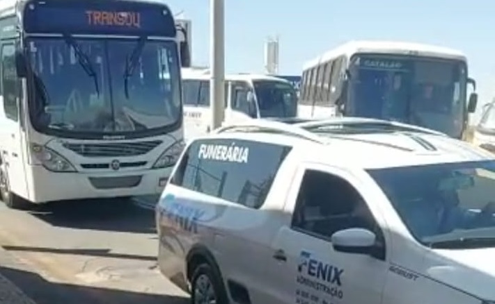 Amigos de trabalho do Senhor Reginaldo Oliveira, 69 anos de idade, fizeram uma homenagem de adeus no final de manhã de hoje. Enfileirados, dezenas de ônibus da empresa Transduarte, onde Reginaldo trabalhava, saíram em cortejo até a saída para Uberlândia-MG, onde ele será sepultado na tarde deste sábado (23).