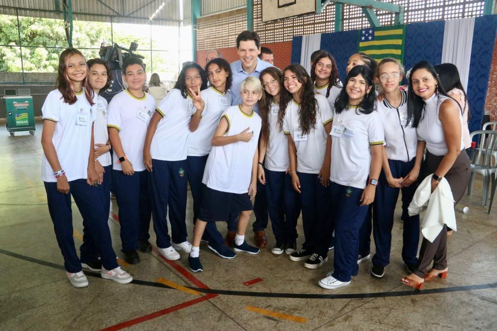 Em seguida, ele entregou as obras de ampliação do Colégio Estadual João Carneiro dos Santos, no Conjunto Morada do Morro, em Senador Canedo, onde também foram repassados aos estudantes kits completos de uniforme e material escolar.