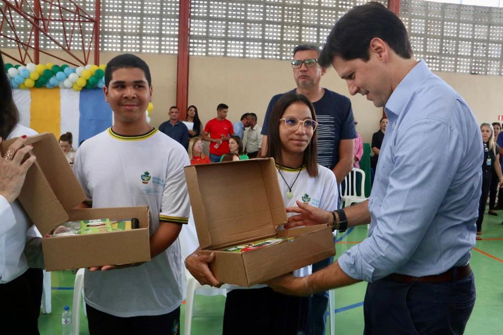 “Não há como ter uma vida adulta bem-sucedida se vocês não tiverem uma boa formação. Se dediquem e aproveitem as oportunidades geradas pelo Governo de Goiás, que investe na Educação para que vocês adquiram conhecimento, tenham chances reais de ingressarem no ensino superior, conquistem boas remunerações, deem qualidade de vida para suas famílias e até mesmo amparem seus pais no futuro, que agora têm feito tanto por vocês”, afirmou o vice-governador Daniel Vilela durante entregas de kits de uniformes, material escolar e chromebooks para alunos da rede pública estadual na última segunda-feira, 30.