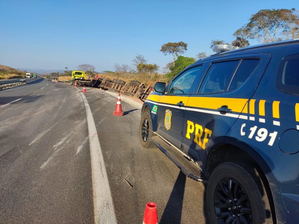 O incidente envolveu um motorista profissional de 59 anos, que conduzia um bitrem carregado com algodão em contêineres no sentido Catalão/GO para Araguari/MG. O perdeu o controle do veículo, saindo da pista e tombando fora da via.