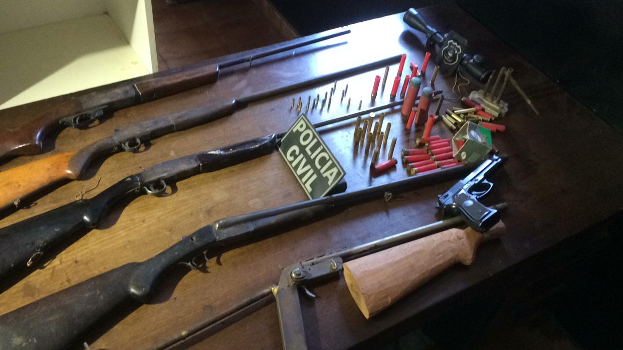 Várias armas de fogo foram apreendidas pelos policiais durante a operação. Foto: Divulgação da PC/Reprodução