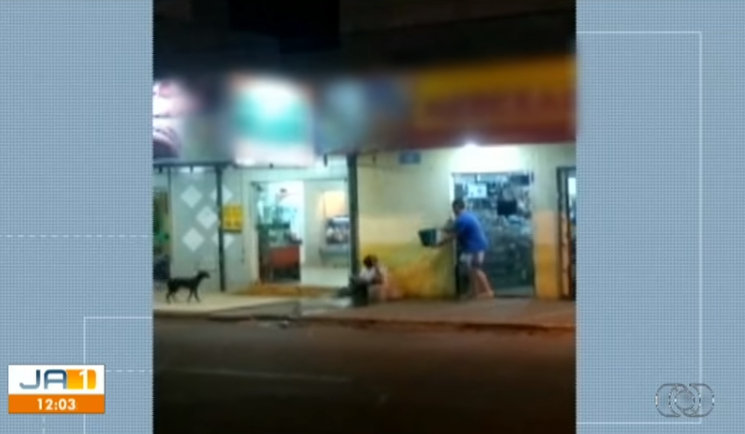 Fato aconteceu na noite da última quinta-feira, 08 de agosto, na calçada de um estabelecimento comercial de Catalão. Foto: TV Anhanguera/Reprodução