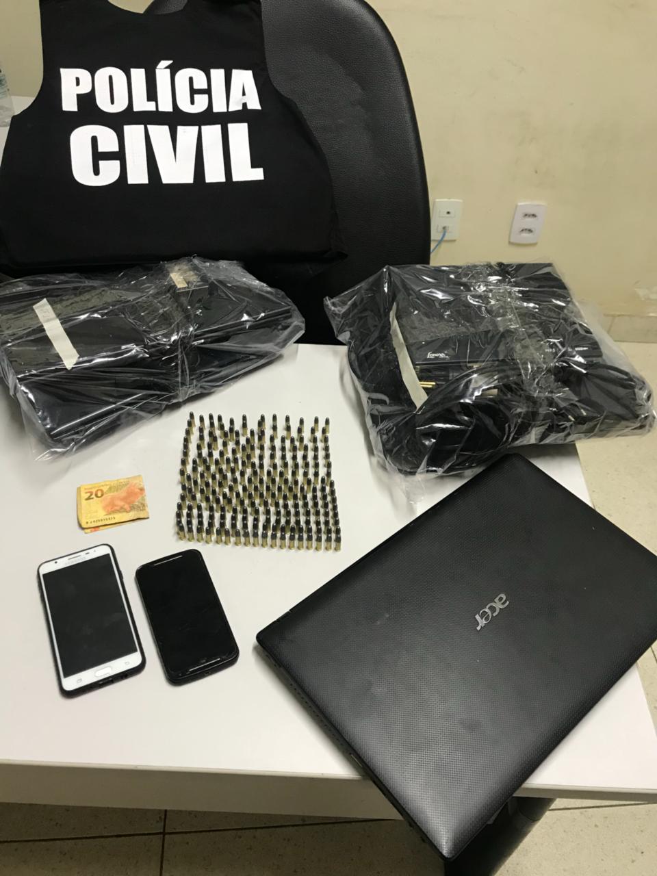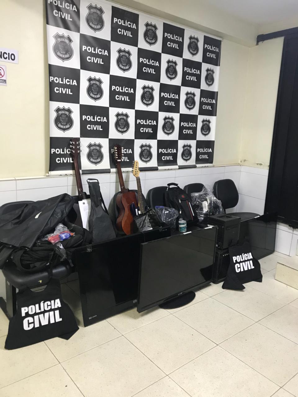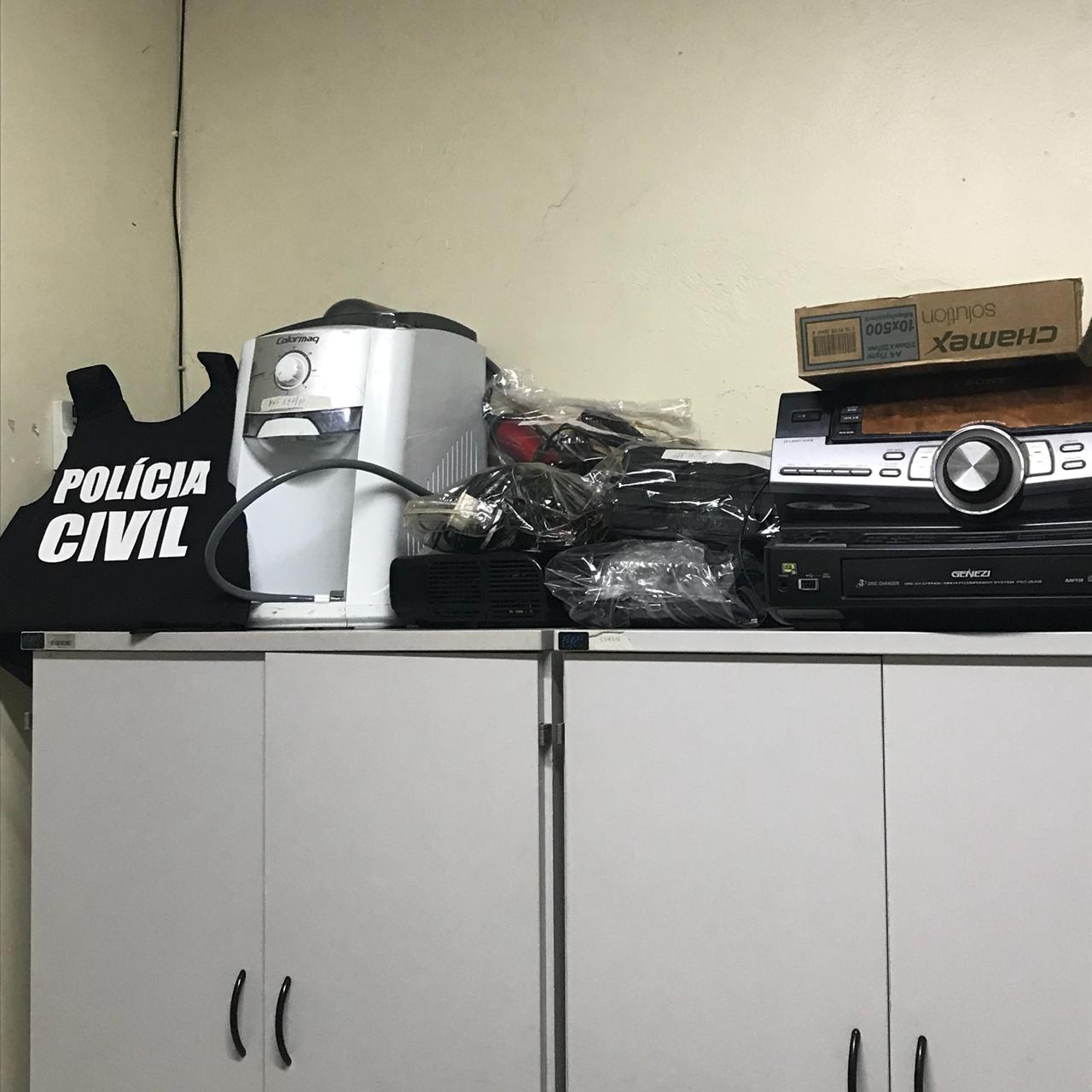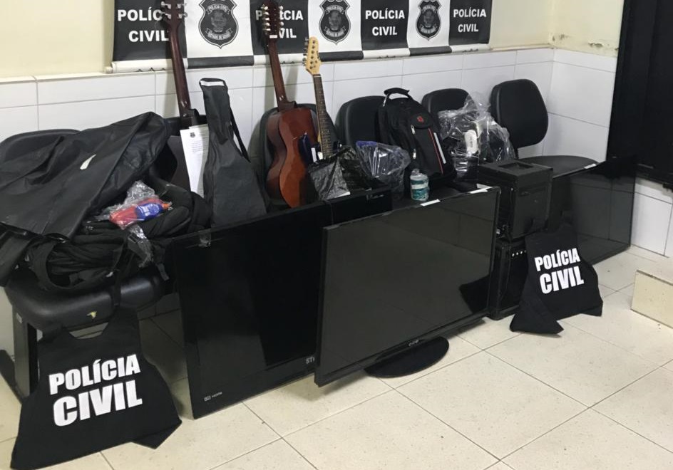 Após ser comunicada pela vítima de furto em residência ocorrido na última quinta-feira (30/03), no Bairro Vila Margon, onde possivelmente estariam seis objetos furtados, a equipe da Polícia Civil deslocou até uma residência no Bairro Pio Gomes e ali abordou o suspeito um rapaz de 22 anos que estava acompanhado de sua namorada, a adolescente I.C.L.M.R, e lá localizaram os objetos furtados da vítima mencionada, além de dezenas de outros objetos produtos de furtos a residência sendo eles: 03 botijões de gás, 04 mochilas de lona, 01 secador de cabelos, 01 aparelho BabyLiss, 01 filmadora Sony, 01 purificador de água Colormaq, 02 aparelhos de DVD, 02 videogames marca PlayStation 4 com controles, 01 controle remoto, 01 caixa de som portátil, 01 fone de ouvido, 02 jaquetas cor preta, 01 cobertor, 01 espingarda de pressão, 01 som automotivo Pioneer, 01 calculadora financeira HP, 01 calculadora científica Casio, 01 relógio de pulso, 01 aparelho de cortar cabelo, 01 óculos de realidade virtual VR Box, 02 notebooks, sendo um Dell e outro Samsung, 01 videogame Tectoy, 01 retroprojetor Epson, 01 HD externo Ata, 01 furadeira BlackeDecker, 01 cartão de memória 4 GB, 01 depilador Philips, 01 parafusadeira, 01 escova rotatória, 01 guitarra Austin, 02 caixa de som sendo uma Toshiba, 01 aparelho de barbear, 01 tablet Genesis, 01 TV 40” Samsung, 01 TV LED 42” CCE, 01 TV LED 40” Semp Toshiba, 01 aparelho de som Sony com quatro caixas, 01 cortador de grama Vulcan, 08 aparelhos celulares diversos marxas Samsun, Motorola e LG , 01 violão elétrico Shelter, 01 viola Giannini, 01 aparelho de barbear Ilhnn, 01 máquina de cortar cabelo Wahl, 01 transformador InduSat, 01 jaqueta de couro Rigon, 01 Ipad Aplle mS7 (objetos estes devidamente descritos no Termo de Apreensão), além de carteiras de bolso, objetos escolares e outros pequenos objetos, bem como 209 munições, marca CBC. Informalmente, o suspeito alegou que recebeu tais objetos de uma pessoa de outra cidade em pagamento de uma dívida. A busca na casa do receptador teve o apoio da PM.