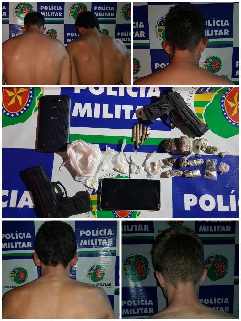 Após as buscas pessoal e domiciliar, o celular e o dinheiro subtraídos das vítimas foram localizados, e dois simulacros de arma de fogo utilizados no roubo foram apreendidos.