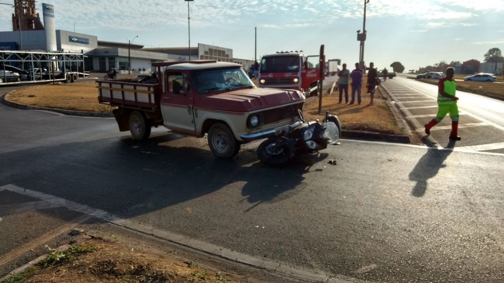 Um acidente envolvendo uma caminhonete e uma motocicleta logo no início da manhã desta quinta-feira (17), por volta das 07 horas. O acidente aconteceu na BR 050, no trevo de acesso do bairro Castelo Branco.