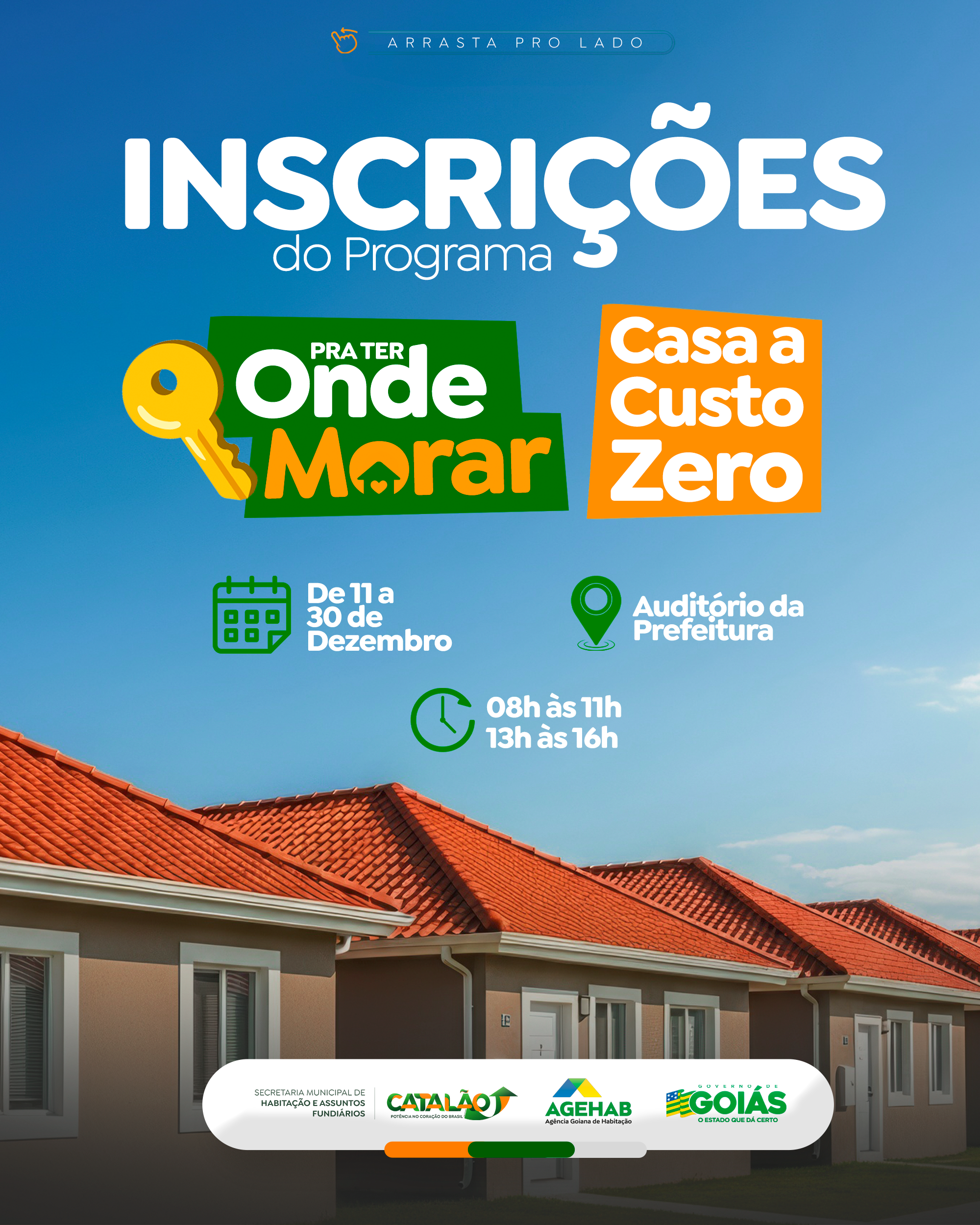 A Prefeitura de Catalão iniciará no dia 11 de dezembro o processo de seleção para 36 unidades habitacionais do programa “Pra Ter Onde Morar – Construção”. A ação ocorre em parceria com o Governo de Goiás (AGEHAB) e seguirá as regras do Edital nº 054/2025. As moradias serão definidas por meio de sorteio público.