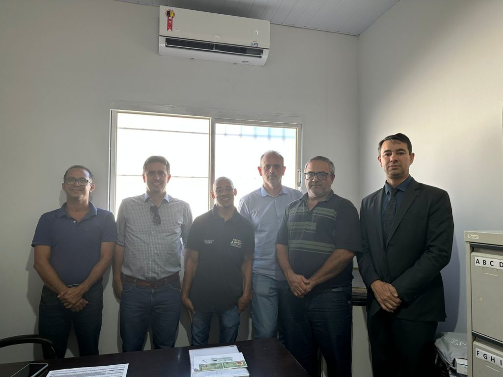 Presidente da ASPDEC, Wladimir Batista, ao lado do presidente Renato Ribeiro (esq.) e de demais diretores do Sindicato Rural de Catalão. Foto: Reprodução
