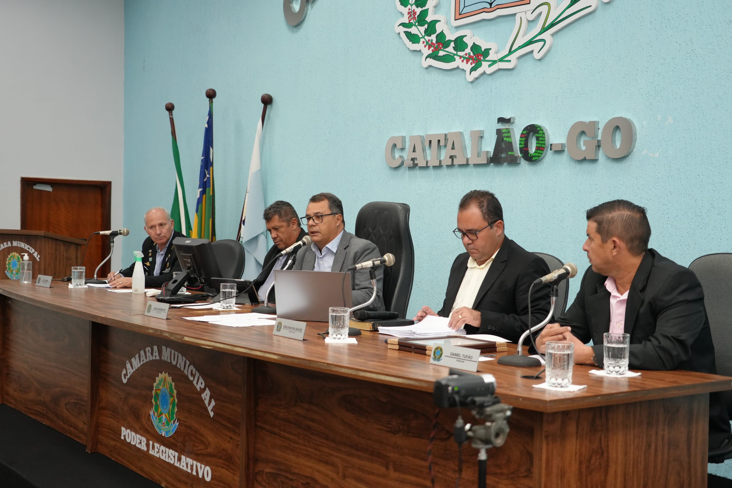 Mesa diretora composta na 38ª Sessão da Câmara Municipal de Catalão. Foto: Ciro Araújo