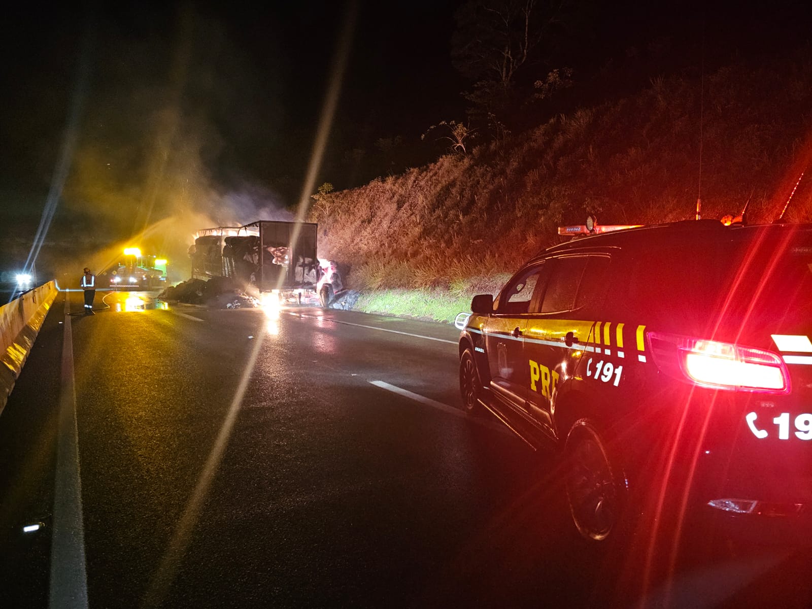 Segundo informações apuradas no local, o motorista percebeu que um dos eixos do veículo havia travado. Em seguida, ele parou no acostamento e constatou um princípio de incêndio. O condutor conseguiu apenas desatrelar o caminhão-trator antes de as chamas se espalharem rapidamente.