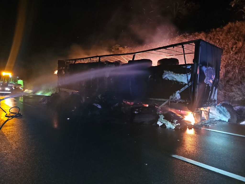 Segundo informações apuradas no local, o motorista percebeu que um dos eixos do veículo havia travado. Em seguida, ele parou no acostamento e constatou um princípio de incêndio. O condutor conseguiu apenas desatrelar o caminhão-trator antes de as chamas se espalharem rapidamente.