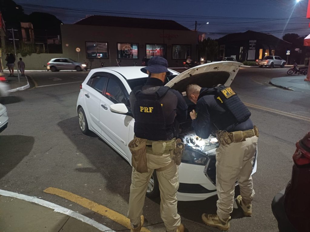 Por volta das 17h desta terça-feira (10), no km 273 da BR-050, durante uma fiscalização, os policiais abordaram um veículo Hyundai HB20, conduzido por um jovem de 21 anos. Ao verificar a placa e o chassi, os agentes notaram sinais de adulteração, como marcas de elementos abrasivos na superfície de gravação.