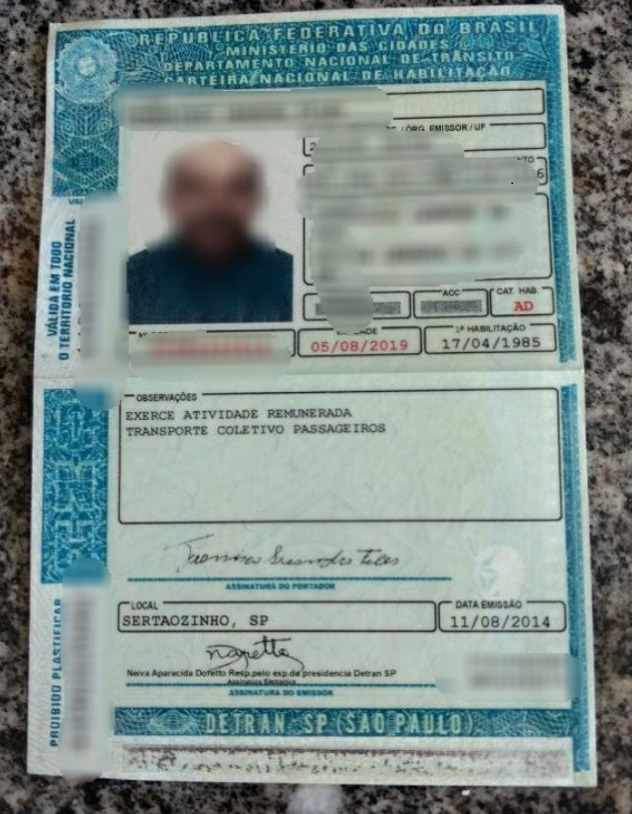 O que mais chamou a atenção dos PRFs, foi que na CNH falsa constava que o mesmo, além de exercer atividade remunerada, também era apto para o transporte coletivo de passageiros, ou seja, sem nunca ter feito o devido processo para obter a habilitação o mesmo falsificou que possuía também o curso de transporte de passageiros.