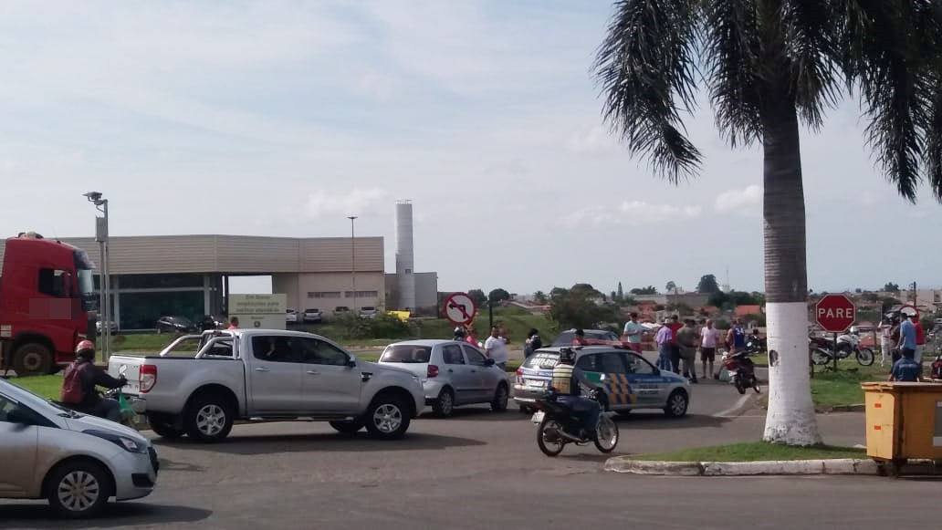 Carro e caminhão se envolvem em acidente no trevo de acesso do bairro Pontal Norte