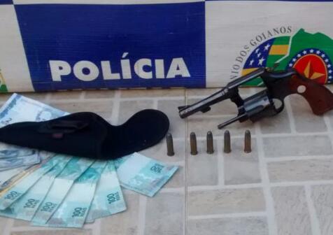 Durante buscas pessoal e veicular, os policiais militares localizaram uma arma de fogo tipo revólver calibre 32 com cinco munições intactas.
