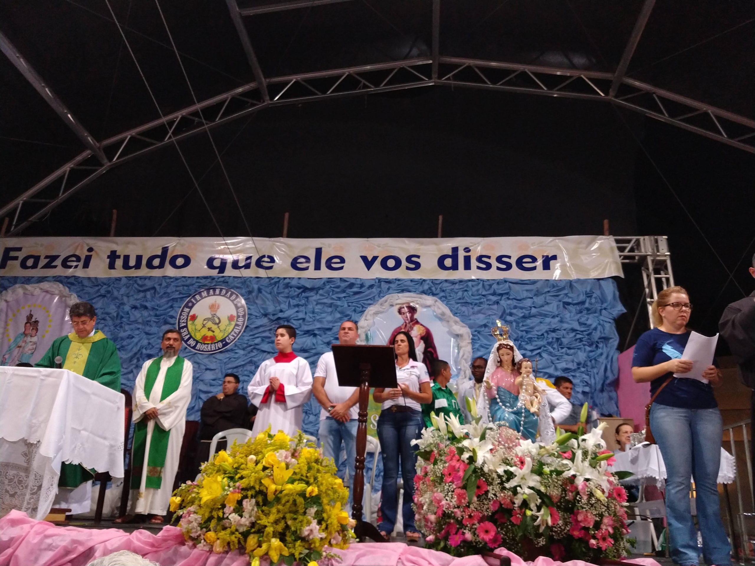Missa de encerramento da Festa em Louvor a Nossa Senhora do Rosário, foi celebrado pelo Padre Orcalino, da Diocese de Ipameri, o qual foi auxiliado pelo Frei Edgar e pelo Padre Emerson. Foto: Badiinho