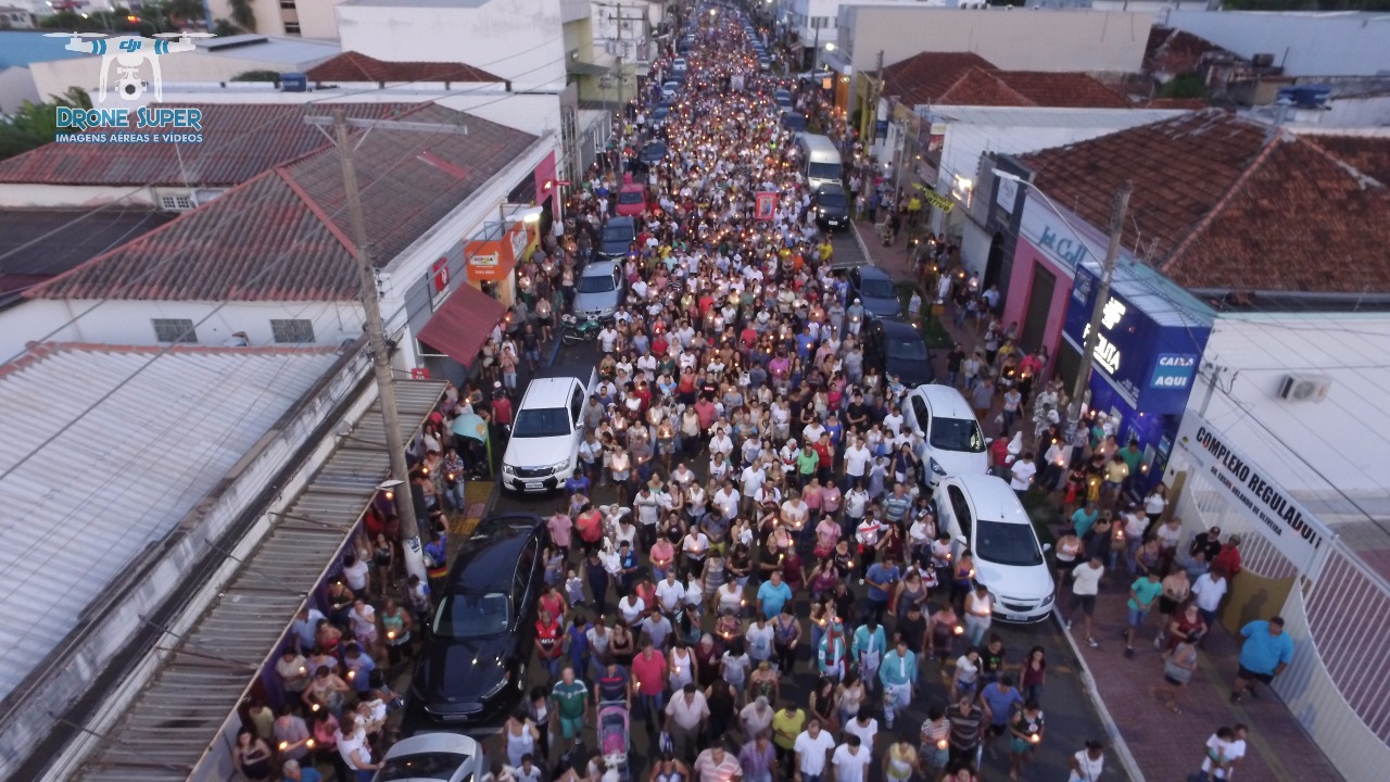 Procissões marcaram a programação do último dia de parte religiosa da Festa em Louvor a Nossa Senhora do Rosário. Foto: Drone Super Catalão/Reprodução