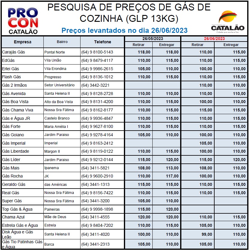 Essa pesquisa tem como objetivo fornecer informações aos consumidores de Catalão, permitindo que eles tenham uma noção dos preços celebrados no mercado local. Com base nesses dados, os consumidores podem fazer escolhas mais conscientes na hora de adquirir o Gás de Cozinha.