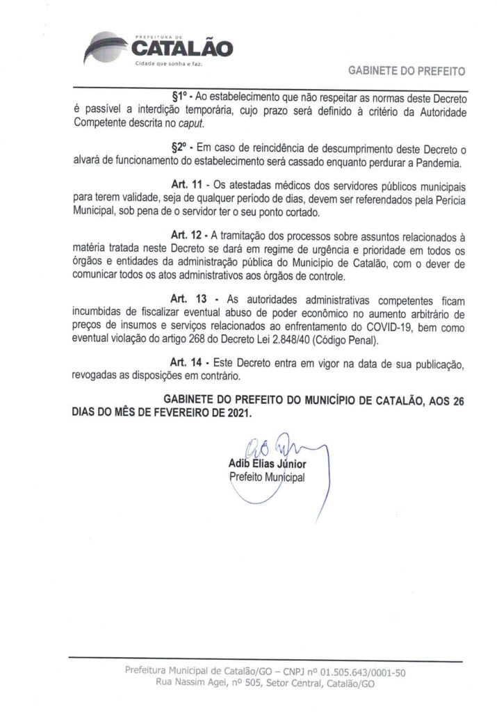 PUBLICADO PELA PREFEITURA DE CATALÃO, O NOVO DECRETO COM FLEXIBILIZAÇÃO DAS MEDIDAS RESTRITIVAS QUE PASSAM A VALER NESTE SÁBADO (27)