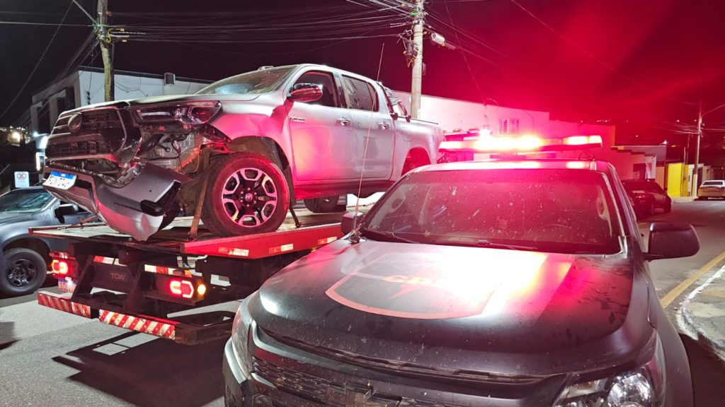 Uma caminhonete Toyota Hilux que havia sido furtada foi recuperada pelos policiais na operação. Foto: Divulgação/CPE Catalão