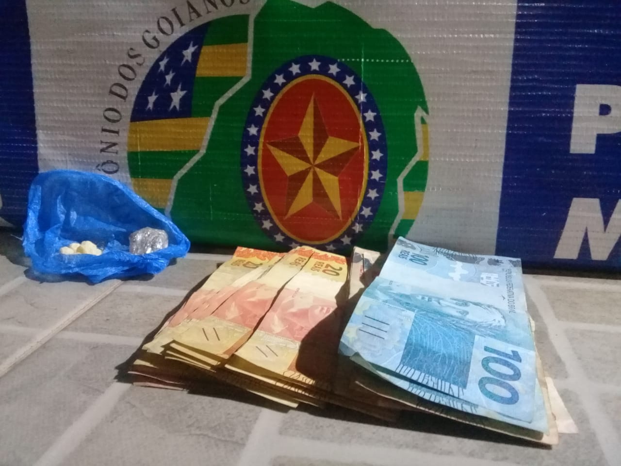 Durante as buscas foram localizadas porções de entorpecentes com aparência de crack e maconha, além da importância em dinheiro de RS 1.062,00 em espécie, provavelmente, de origem ilícita.