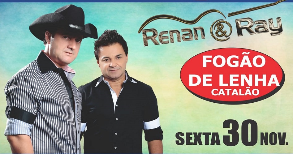 Na próxima sexta, 30 de novembro, a dupla Renan e Ray fazem show na cidade de Catalão, no Fogão de Lenha Show, situado às margens da BR 050, em frente ao trevo da Mitsubishi.