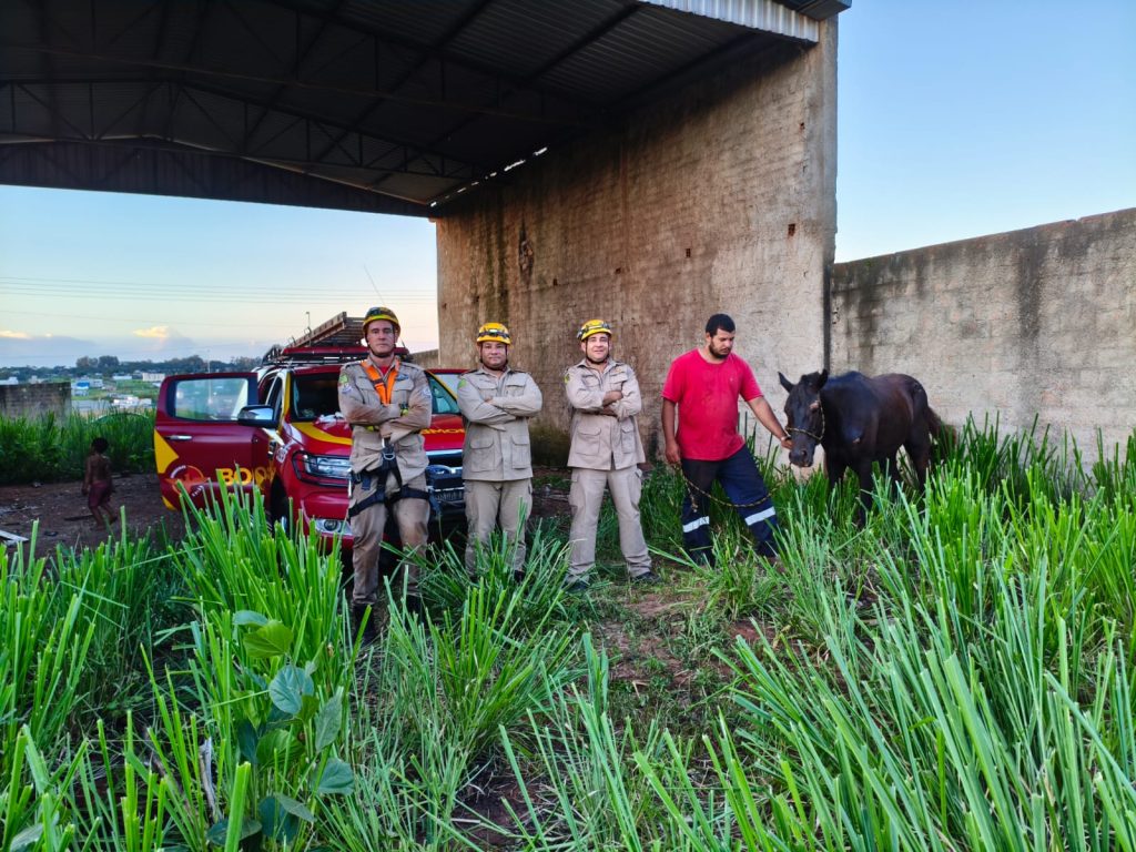O Corpo de Bombeiros Militar de Catalão (10º BBM) realizou, na tarde desta quarta-feira (25), feriado de Natal, o resgate de uma égua que caiu em uma fossa séptica desativada no bairro Pontal Norte.