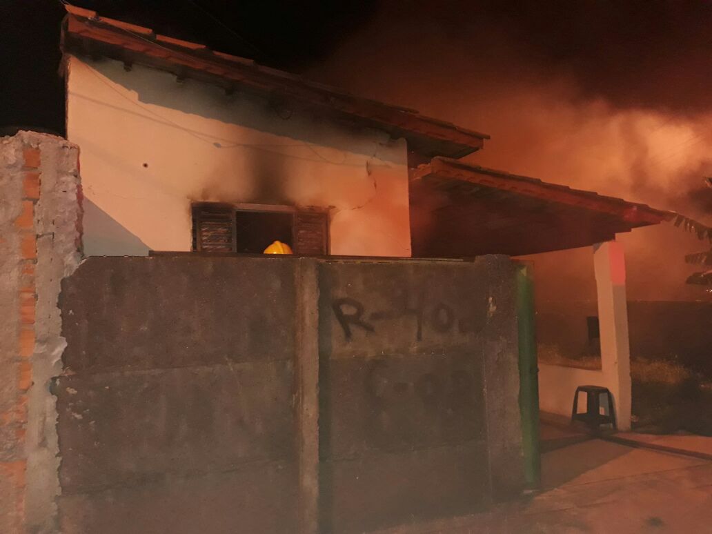Chamas fez com que parte do telhado da casa caísse. Fotos: (Reprodução/Divulgação Corpo de Bombeiros).