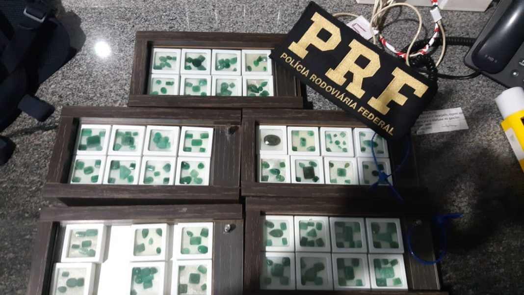 Segundo levantamentos preliminares, o material apreendido são esmeraldas naturais lapidadas, acompanhadas de laudos de avaliação.