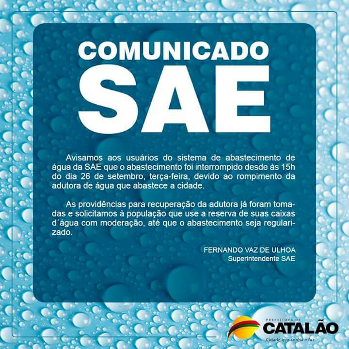 O rompimento de uma adutora ocorrido na tarde desta terça-feira (26), que comprometeu o abastecimento da Estação de Tratamento de Água (ETA), e consequentemente interrompendo o abastecimento em toda a cidade de Catalão.