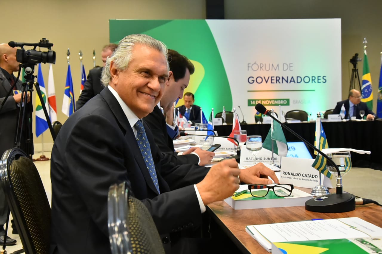 O Senador e governador eleito em Goiás, Ronaldo Caiado (DEM), participou do Fórum dos Governadores, realizado nesta quarta-feira (14), em Brasília-DF. Caiado, que se encontrou novamente com o presidente eleito, Jair Bolsonaro (PSL), concedeu entrevistas e se reuniu com outros 20 governadores de diferentes estados.